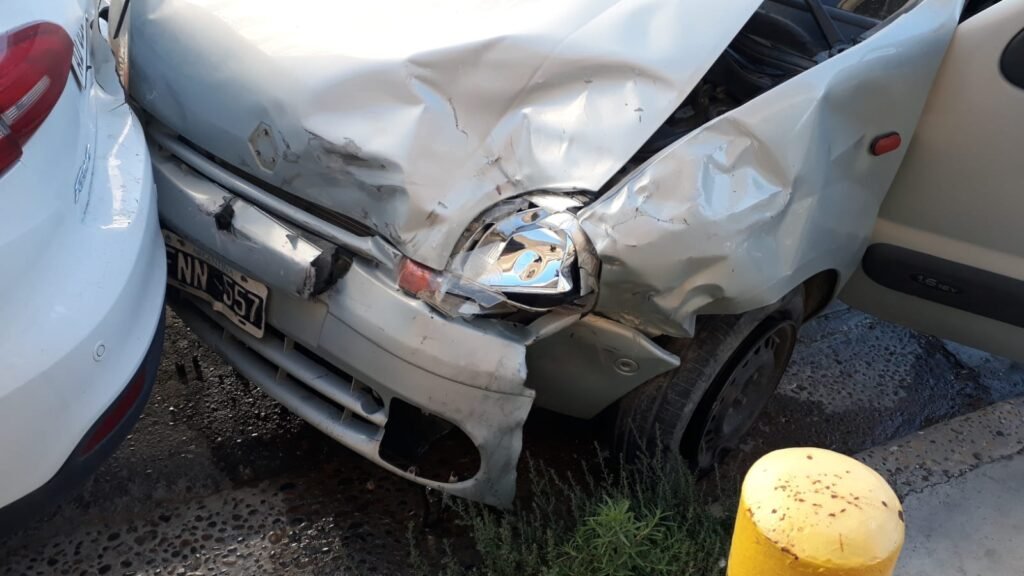 Una Ford Eco Sport y una Kangoo, chocaron en Rivadavia y Chacabuco. Se solicitó la presencia de personal de Emergencias, debido a que el conductor del utilitario presentaba un fuerte dolor en el pecho.