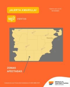 La Subsecretaria de Protección Ciudadana dependiente del Ministerio de Seguridad y Justicia, informa sobre la zona de cobertura del alerta amarillo por vientos, emitido por el Servicio Meteorológico Nacional prevista para la madrugada – mediodía del 10 de marzo.