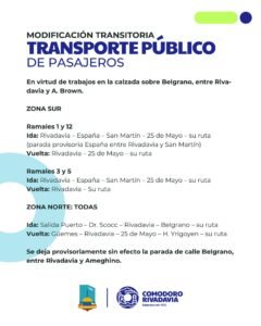 Finalmente, el Municipio aclaró que queda provisoriamente sin efecto la parada de calle Belgrano, entre Rivadavia y Ameghino, por lo que quienes utilizaban ese punto deberán trasladarse a las paradas alternativas señalizadas.