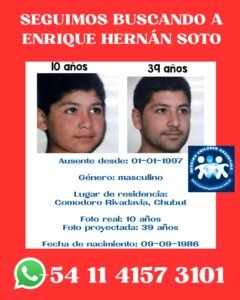 La imagen ya circula por todo el país y el mundo, acompañada de los números de contacto oficiales para cualquier persona que pueda aportar información sobre el posible paradero de Soto. Uno de los canales habilitados es el +54 11 4157-3101, correspondiente a Missing Children Argentina.