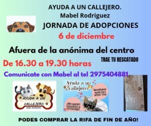 Será este sábado 6 de diciembre de 16:30 a 19:30. Quienes quieran sumar a su rescatado, participar como voluntarios o recibir más información pueden comunicarse con Mabel Rodríguez al 297 540 4881.