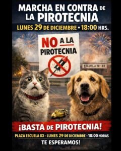 Ante este panorama, desde la organización convocan a la comunidad a movilizarse para exigir el cumplimiento efectivo de la normativa y avanzar hacia una pirotecnia cero en la ciudad. Será el lunes 29 de diciembre a las 18 horas en la Plaza de la Escuela 83.