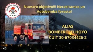 La iniciativa busca reunir fondos para adquirir la unidad y fortalecer la respuesta ante los incendios que afectan la zona. Las donaciones pueden realizarse al alias bomberoselhoyo, CUIT 30-67034426-2.