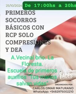 Este viernes 25 de octubre, habrá un curso gratuito de RCP y DEA en la unión vecinal del barrio La Floresta.