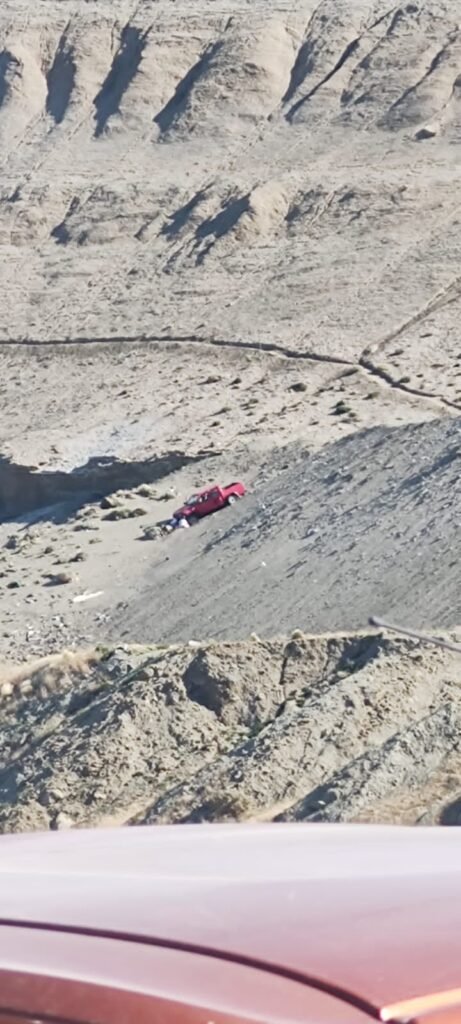 Alrededor de las 17:30 horas, personal de la Seccional Mosconi, tomó conocimiento del despiste de una camioneta. Tras arribar al lugar observó a la altura de la ladera del Cerro Chenque una camioneta, Nissan roja, que había caído de aproximadamente de 10 metros.