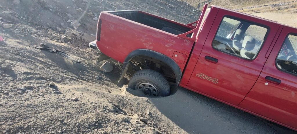 El conductor de una camioneta marca Nissan, despistó y cayó aproximadamente 10 metros de la ladera del cerro. No hubo lesionados.