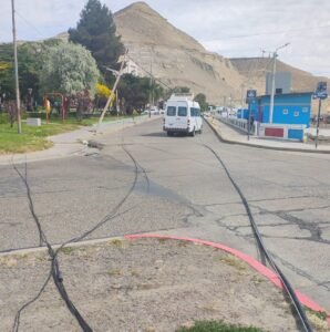 Este viernes, alrededor de las 10:27hs., una palma de luz cayó en la intersección de Scocco y Avenida Costanera, provocando que varios cables quedaran sueltos sobre la calle. Ante la situación, personal policial acudió de inmediato y solicitó la intervención de áreas municipales y de servicios.