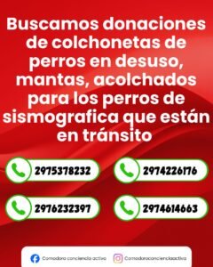 Las personas interesadas en colaborar pueden comunicarse a los teléfonos: 2975378232, 2974226176, 2976232397 o 2974614663.