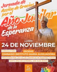 El evento concluirá con la celebración de la Santa Misa en la Catedral San Juan Bosco, punto central de esta jornada. Desde la Diócesis, invitan a participar a familias, jóvenes y adultos, en una jornada para cerrar el Año Jubilar.