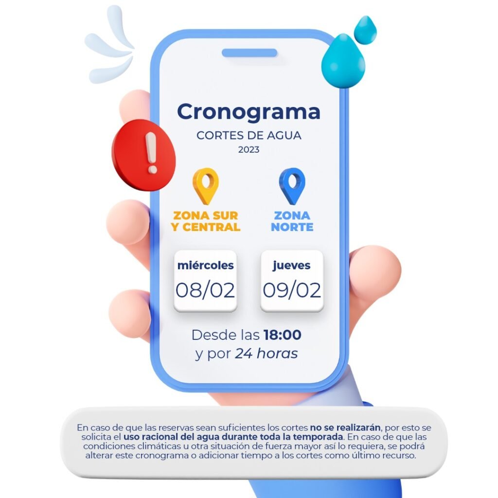 Cabe aclarar que las maniobras de corte como de restitución del servicio comienzan antes y terminan luego del horario estipulado. Se solicita a los vecinos hacer uso racional del servicio.