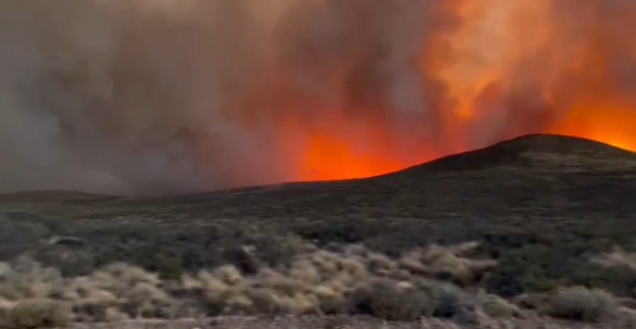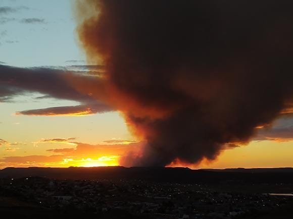 A 20 kilómetros de Caleta Olivia, se originó un gigantesco incendio, en principio sobre la traza de la línea eléctrica que alimenta al pozo TP 3013. Trabajan dotaciones de bomberos, Defensa Civil y Policía, los fuentes vientos complican la situación.