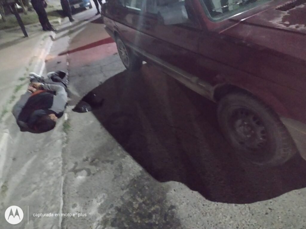 Al pasar un móvil de la Seccional tercera, egectivos de la DPI le hicieron señas que siga al rodado, logrando alcanzarlo e identificar a los tres sujetos de 37, 29 y 28 años, asimismo el masculino que iba a pie también fue detenido.