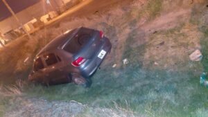 El vehículo terminó dentro del canal de desagüe pluvial con su frente orientado en sentido sur-norte, con daños en el paragolpes delantero del lado del conductor.