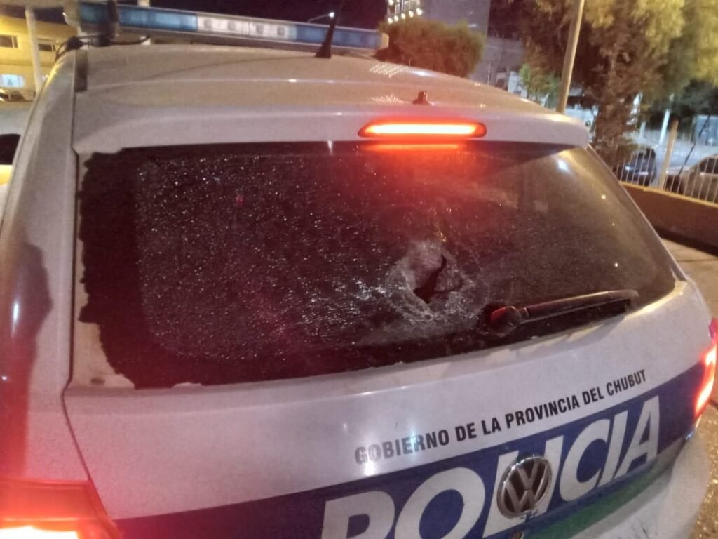 Tras la llegada del móvil policial, el vecino indicó donde se encontraba el sujeto, y éste comenzó a agredir con piedras al móvil policial, dañando la luneta.