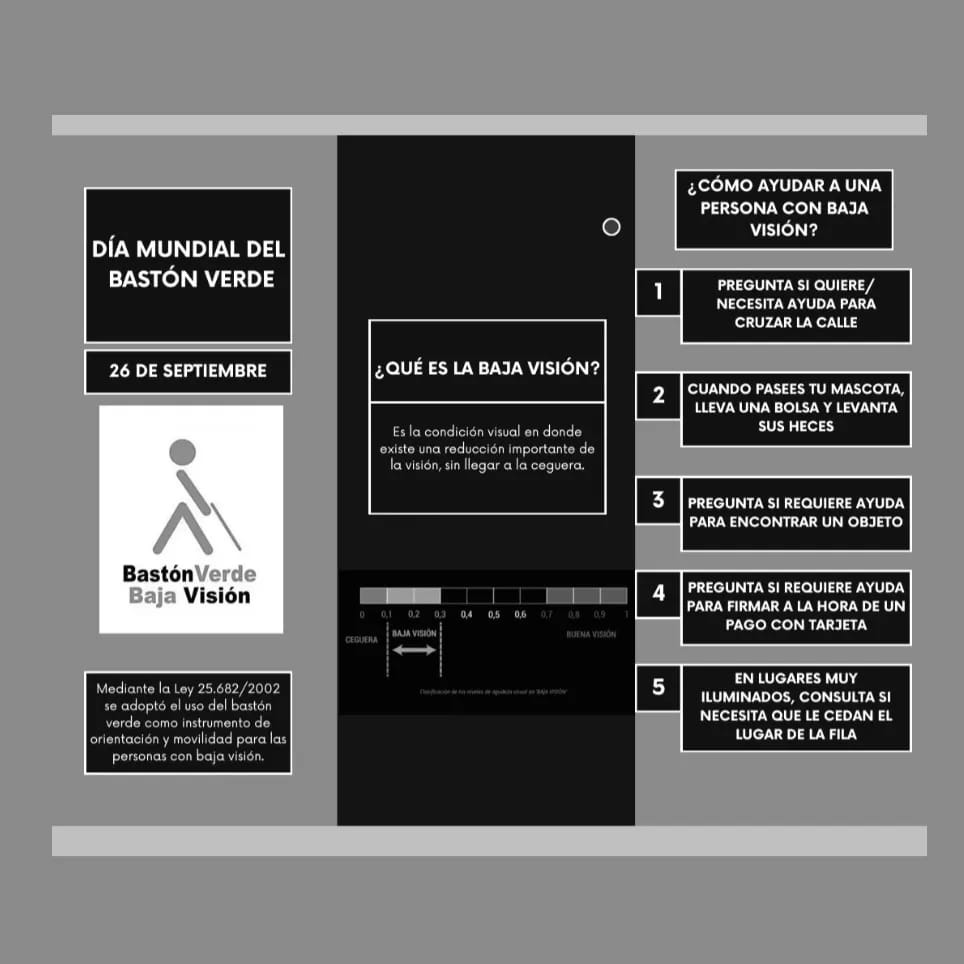 En este sentido, cada 26 de septiembre se conmemora el Día del Bastón Verde, con el objetivo de promover la utilidad de la herramienta que persigue dos objetivos: además de ayudarle como guía a quien lo usa permite a los transeúntes identificar a las personas que posean dicha condición y así poder ayudarlos mejor en caso de ser necesario.