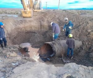 En este momento, se está procediendo a las tareas de descarga del conducto para iniciar con las excavaciones y realizar los trabajos de reparación.