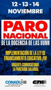 De esta forma, el gremio docente convocó a un paro nacional de 72 horas los días miércoles 12, jueves 13 y viernes 14 de noviembre de 2025, en el marco de la continuidad del plan de lucha en todas las universidades del país.