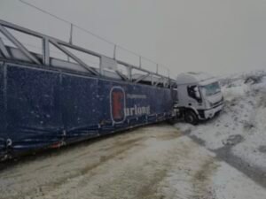 Casi en simultáneo, desde Puerto Santa Cruz, otra unidad del Cuartel 7° salía hacia el kilómetro 2405 de la misma Ruta 3. A las 11:10 hs, tres bomberos a bordo de una autobomba respondieron al pedido de asistencia de la División Comisaría Local. En esta ocasión, se trataba de un camión perteneciente a la empresa Transporte Fulón, conducido un hombre oriundo de Curuzú Cuatiá, Corrientes, que terminó en posición de “tijera”, bloqueando por completo la calzada.