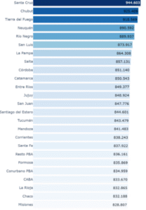 Los mayores costos son en parte compensados por remuneraciones más altas. “Se destaca Santa Cruz con la canasta más costosa y es el segundo mayor salario promedio del sector privado registrado, por detrás de Neuquén”, señaló el estudio.