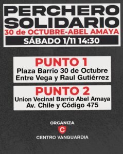 Este sábado 1 de noviembre a partir de las 14:30 horas se realizará una nueva edición del Perchero Solidario, una iniciativa del Centro Vanguardia que recorrerá los barrios 30 de Octubre y Abel Amaya para acercar ropa y calzado de manera gratuita a las familias que más lo necesitan.
