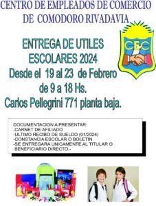 En los próximos días comenzará la entrega de útiles y elementos escolares a los hijos de los afiliados del CEC, una práctica que viene realizando desde hace muchos años y que es muy bien recibida por la gran cantidad de empleados de comercios locales.