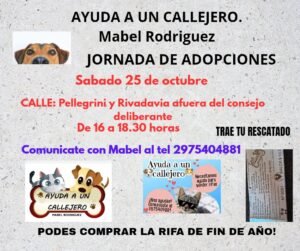 Este sábado 25 de octubre, Ayuda a un Callejero llevará adelante una nueva campaña de adopciones en Avenida Rivadavia y Pellegrini, entre las 16:00 y las 18:30 horas.