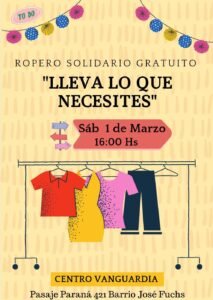 Este sábado 1 de marzo, desde las 16 y hasta las 19 horas, se llevará a cabo un Perchero Solidario en Pasaje Paraná 421 del barrio José Fuchs.