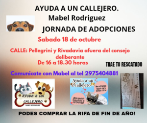 Este sábado 18 de octubre, Ayuda a un Callejero llevará adelante una nueva campaña de adopciones en Avenida Rivadavia y Pellegrini, entre las 16:00 y las 18:30 horas.