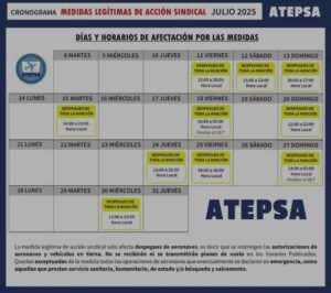 ATEPSA acusó a las autoridades de promover un “vaciamiento estructural” y de difundir reportes tendenciosos para deslegitimar el reclamo. Para fortalecer la protesta, el jueves 10 de julio se reunirá un plenario de los cinco sindicatos aeronáuticos (APLA, UPSA, APA, Aeronavegantes y ATEPSA) y delineará un plan de acción conjunto frente a “políticas que amenazan la sostenibilidad del sistema aeronáutico nacional”.
