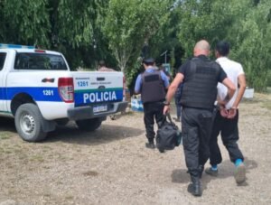 Finalmente una comitiva policial de la Cria Sarmiento se hizo presente en el Camping Municipal de Facundo y procedió a la demora y traslado hasta ladependencia local, donde quedará detenido hasta la audiencia de control.