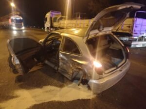 Este miércoles, cerca de las 2:30, personal policial de la Comisaría Mosconi se hizo presente hacia la Ruta Nacional N°3, a la altura de la Curva del Chalet Huergo, por un choque entre dos vehículos.