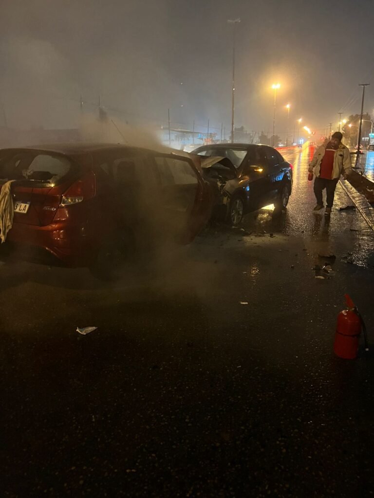 Dos vehículos involucrados, un Ford Fiesta y un Ford Focus. Bomberos debieron rescatar a uno de los conductores, que había quedado atrapado en el vehículo.