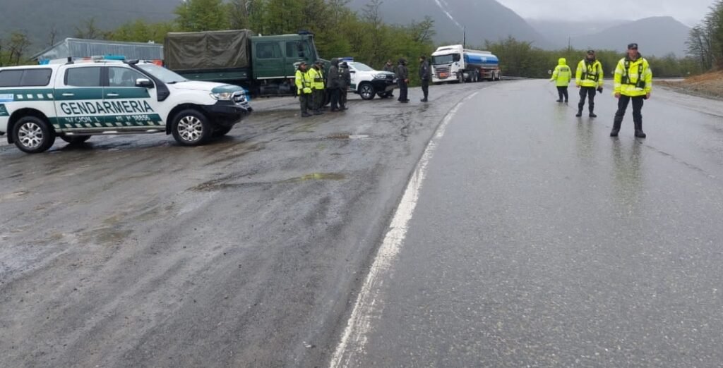 Ante las intensas precipitaciones níveas registradas en los últimos días, los gendarmes llevaron a cabo actividades preventivas a la altura del Departamento de Tolhuin, auxiliando vehículos varados sobre el corredor vial.