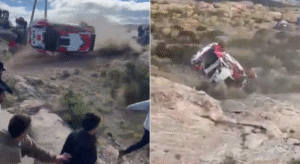 Las imágenes filmadas por los testigos muestran el momento en que el vehículo se descontrola en el tramo Giulio Cesare, entre los kilómetros 1 y 2. Luego de impactar contra las piedras, comienza a dar tumbos y se dirigió hacia la zona donde estaba el público.