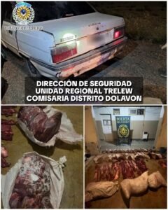 Un control policial nocturno permitió detectar un Renault 9 cargado con carne de guanaco. Se secuestraron más de 300 kilos correspondientes a unos 12 animales y el vehículo quedó retenido por faltas documentales.
