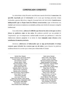 En el documento, los mandatarios locales remarcaron que conocen de primera mano “lo difíciles que fueron los años en los que nuestros chicos no pudieron estar en las aulas” y advirtieron que no se puede permitir que “un puñado de empresarios que se enriquecieron usufructuando recursos que pertenecen a todos los chubutenses intenten propiciar el no inicio de clases tomando como rehenes a los estudiantes”.