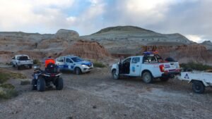 Detalló que los equipos de rescate partieron desde Pampa Salamanca hacia el este, y que en las próximas horas se seguirá con la búsqueda desde Rocas Coloradas hacia el norte, con el objetivo de abarcar nuevos sectores del extenso terreno.