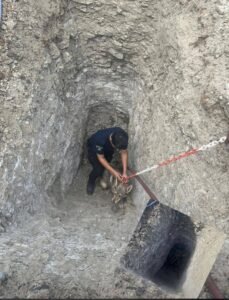 Una perrita se cayó en un pozo y fue rescatada. Sin embargo, en ese momento la dejaron suelta y se escapó.