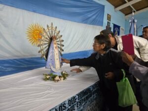 Por su parte, Daniel —integrante del grupo laico “Fe de Centurión”— llegó desde la provincia de Buenos Aires como peregrino para acompañar la imagen. “No soy veterano, cuando sucedió la gesta de Malvinas estaba en la escuela secundaria, pero por circunstancias de la vida, a los 34 años empecé a ser malvinero desde la Iglesia Católica”, contó.