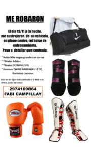 A través de una publicación difundida en redes sociales, detalló que se trata de un bolso Nike negro grande con correa, en cuyo interior llevaba distintos elementos deportivos que utiliza a diario.