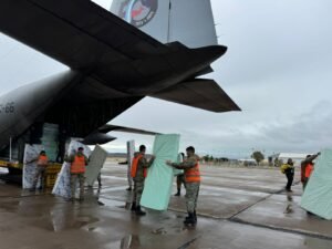 Al mismo tiempo y al referirse a la carga la ministra señalo “Ahora llegan colchones, nylon, botas de goma, ropa de abrigo. Es decir, todo ese tipo de insumos. En un posterior vuelo llegará alimentos secos”.