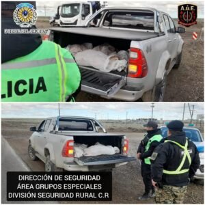 Personal de la División de Seguridad Rural de Comodoro Rivadavia detectó este viernes el transporte ilegal de un bovino despostado en el empalme de la Ruta Nacional 26 con la Ruta Provincial 39, a unos 80 kilómetros del casco urbano.