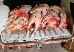 Al identificarlo, notaron por la ventanilla de la puerta trasera del rodado que había una gran cantidad de animales faenados, limpios y sin sellos de frigoríficos. Cuando le consultaron sobre eso, el conductor les dijo que eran para vender.