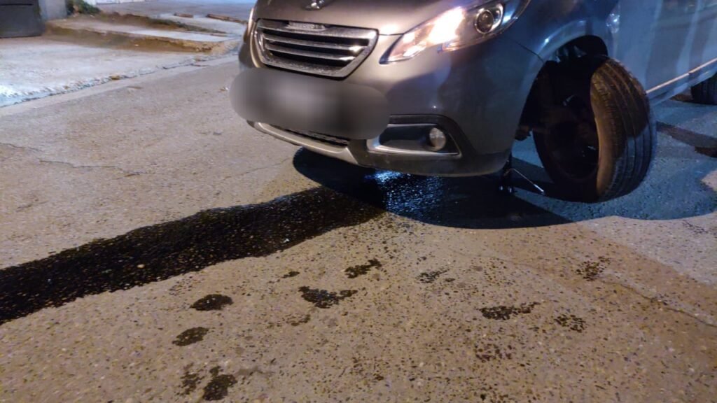 Personal de la Seccional Cuarta, realizaba patrullaje alrededor de las 6 de la mañana de este sábado, cuando en Kennedy y Rivadavia observaron un Peugeot con la rueda delantera dañada.