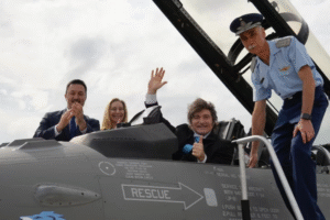 Milei sostuvo que la llegada de la flota marca “un día histórico para todos los argentinos” y afirmó que los F-16 se convierten desde ahora en “los nuevos custodios del espacio aéreo argentino”. Remarcó que esta etapa busca revertir el destrato de las últimas décadas hacia las Fuerzas Armadas y reconstruir su vínculo con la sociedad.