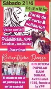 En este sentido, el valor del corte será leche, azúcar o harina. Incluso, los que colaboren con dos artículos entrarán en un sorteo especial. El evento solidario se realizará en la biblioteca popular Elum Duham, en Av. Polonia 1785.