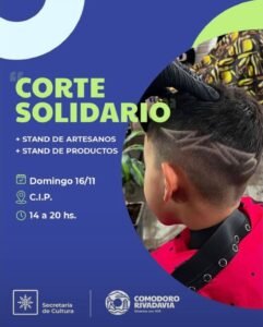 Este domingo 16 de noviembre, de 14 a 20 horas, se realizará una nueva edición del Corte Solidario en el Centro de Información Pública (CIP), con entrada libre y gratuita.