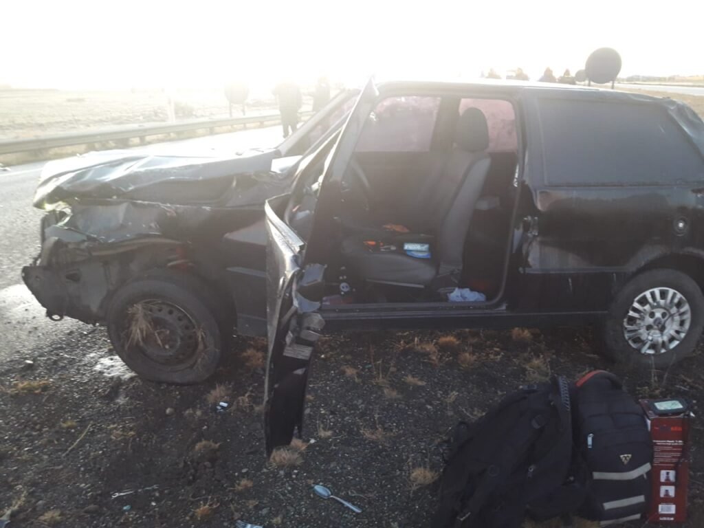 El siniestro vehicular ocurrió en la Ruta Nacional Nro. 3, cerca de la Fuerza Aérea. Al llegar al lugar, se encontró un vehículo Fiat Uno color azul con importantes daños materiales y dos ocupantes lesionados.