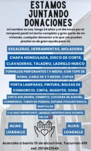 Además, se solicita el apoyo de personas dispuestas a colaborar con tareas manuales en la vivienda.