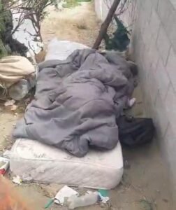 En el video difundido se observa a esta persona en una situación extrema, rodeada de basura y durmiendo sobre un colchón.